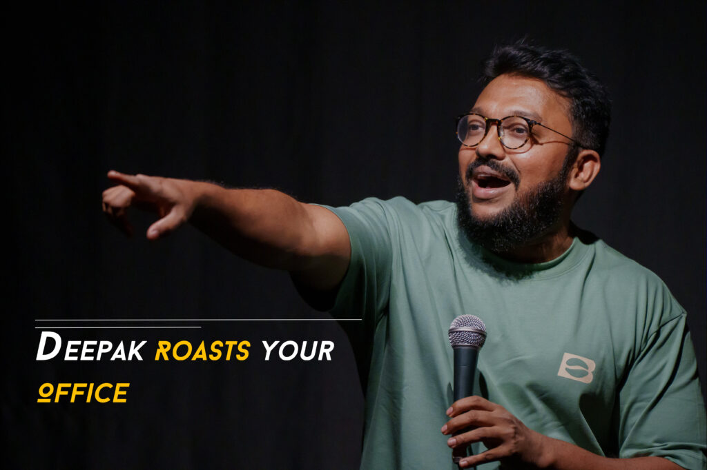 Unlike typical stand-up routines, Deepak spends time with your team, learns your culture, gathers your inside jokes, and delivers a clean, clever, customized roast that lights up the room. Safe, sharp, and within boundaries — corporate comedy like you’ve never experienced